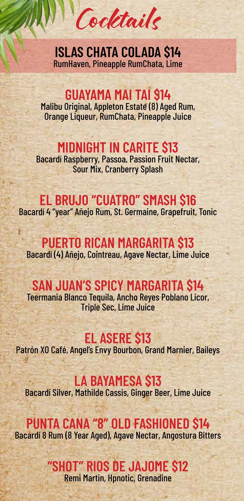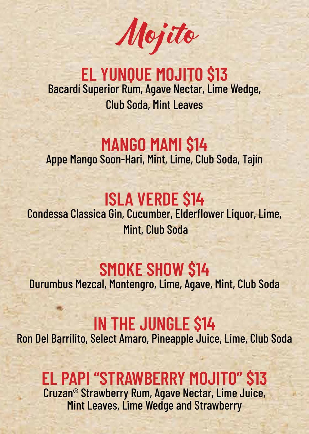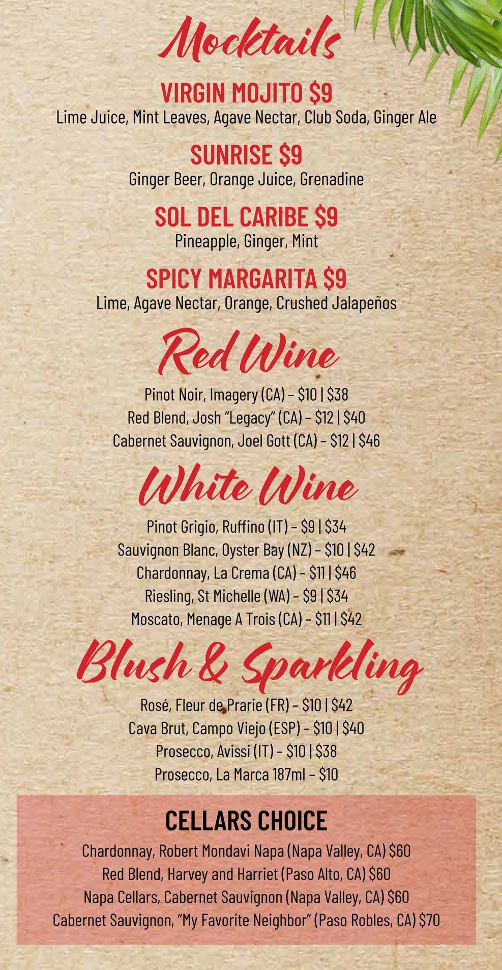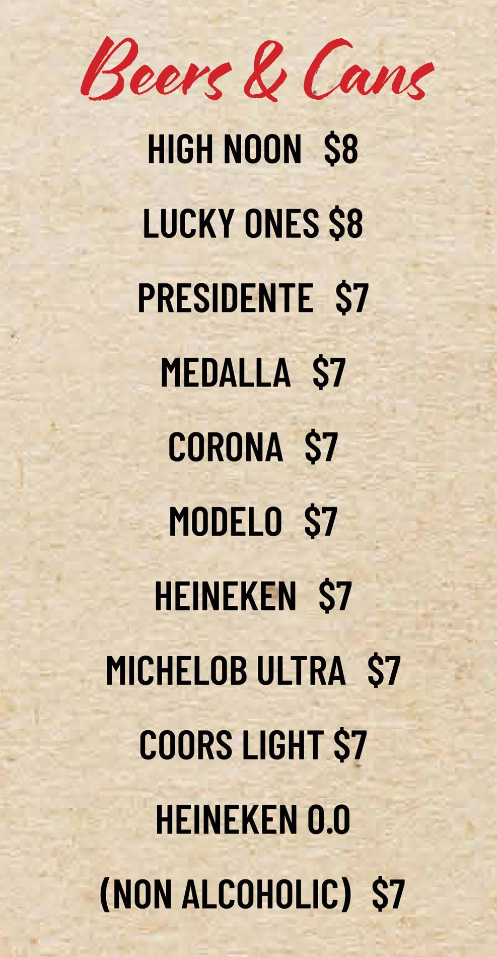 Prices reflected on the menu are with a cash discount.